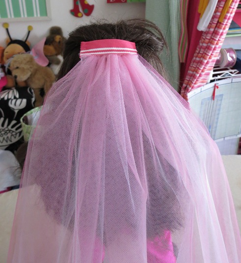 (If you can’t get your tulle to stay in your sandwich, you can use the ‘binding method’ by stitching the tulle to one side, then folding it over, and stitching again, I did this since I have to two nice white stripes to hide my stitches for me). Party-Veil-Tutorial